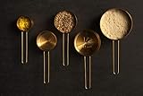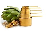 Safe attractive handle design the stylish rounded handles are easy to hang and are also very attractive In addition the strong stainless steel construction provides a solid grip to help ensure the cups and spoons wont slip out of your hand Full kitchen measuring set this 10piece gold measuring spoon and cup set includes the most popular sizes of measuring spoons and measuring cups 1 cup 12 cup 13 cup 14 cup 18 cup 1 tbsp 12 tbsp 1 tsp 12 tsp and 14 tsp