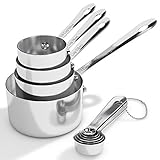 1Easylife - No more guessing longer and easytogrip handles with clearly etched on markings feature neither worn off nor washed off over time a more comfortable grip feeling makes easily measure dry and liquid ingredients Refined finish perfect balance made of one piece polished well construction with smooth around so there is no gaps for ingredients to get stuck pretty hefty in the weight and flat bottoms on cups feature not prone to tipping over makes both cleaning and measuring a breeze Essential 6 spoons 6 cups with 2d rings and a bonus measure equivalent complete set includes 6 stainless measuring cups 14 13 12 23 34 and 1 cup and 6 spoons 18 ¼ ½ 1 tsp ½ 1 tbsp 2 d rings and a bonus equivalents magnet is also contained you can easily stick it on your fridge and always have it on hand