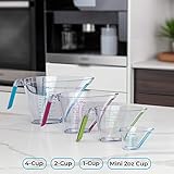 KPKitchen - Measure accurately every time our liquid measuring cup set contains all the sizes you will ever need for measuring liquids It includes 4 different cups with the sizes ranging from 4cup 2cup 1cup a mini 2oz small measuring cup That way you will have the perfect sized cup for every recipe you need Plus all measurement markings are in cups and milliliters That makes it super easy to read the markings from the top and you just see how much is in the cup at every point Perfect addition to any kitchen backed by a 3year warranty a plastic measuring cups set for liquids that works great youll be happy with in your kitchen If you want no compromise in quality easy to read measurements from the top then the kpkitchen liquid measuring cups set is exactly what youre looking for