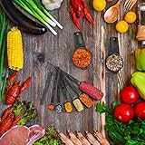 2 Lb. Depot - Narrow spoon design fits in spice jars unlike round measuring spoons our narrow design and 4 long handles fit easily into spice jars or tins and can be used by chefs and bakers in commercial residential and farmhouse kitchens Our black measuring cups spoons set accurately measure wet liquid and dry food ingredients like spices water milk olive oil coffee tea medicine flour supplements protein powder salt pepper honey and more Premium high quality stainless steel never purchase another set of black measuring cups spoons again Our black measuring cups and spoons are made from premium heavy duty rust proof 188 stainless steel and have usa and metric ml measurement markings engraved directly into the measuring cups and spoons so theyll never wear off Our black measuring cups and spoons are designed to last a lifetime unlike cheap plastic or flimsy metal cups and spoons that can warp melt or bend